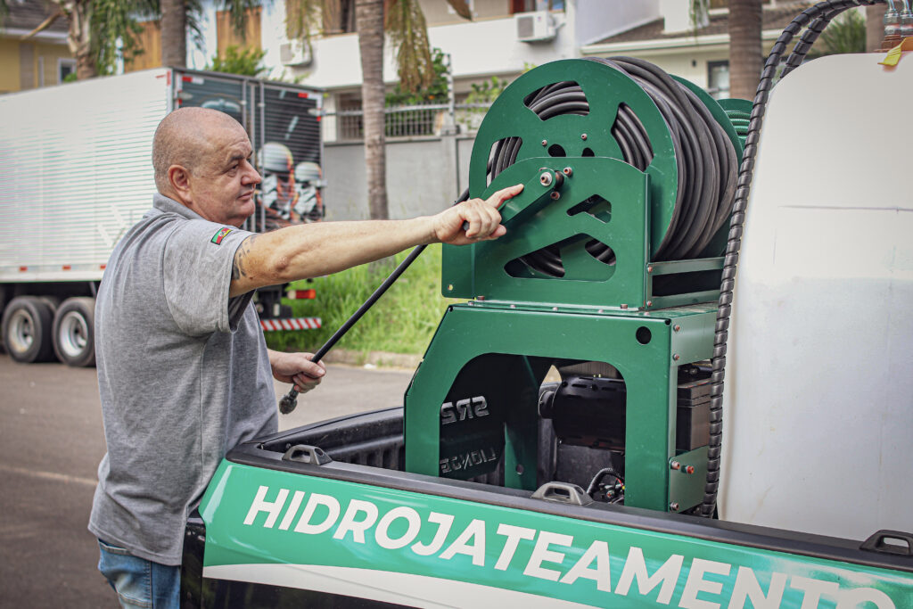 O processo de Hidrojateamento para limpeza, desobstrução ou desentupimentos em gerais utiliza agua em alta pressão e vazão através de bombas e mangueiras especiais.
